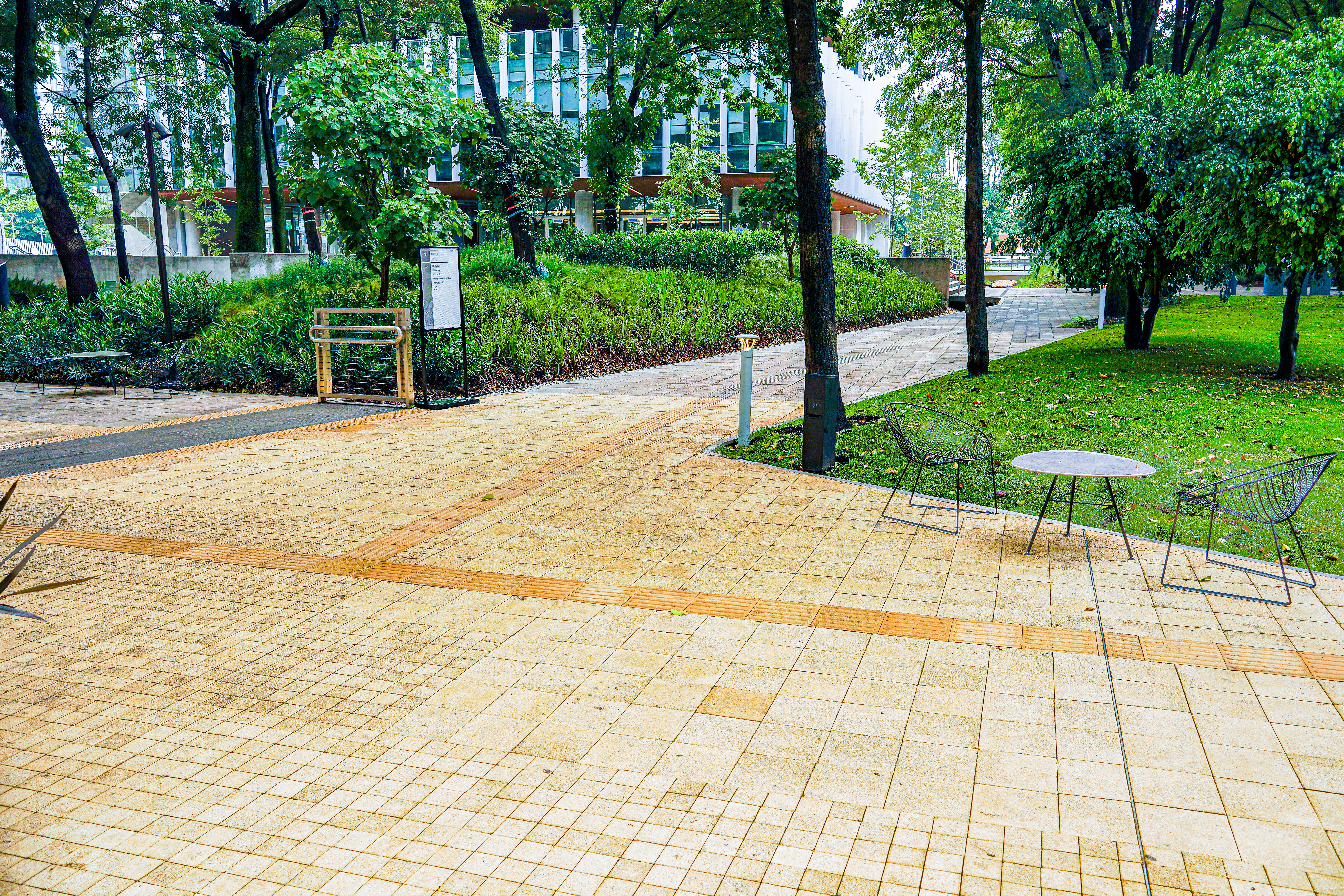 Piso prefabricados en distintos formatos, losas táctiles y banca recta