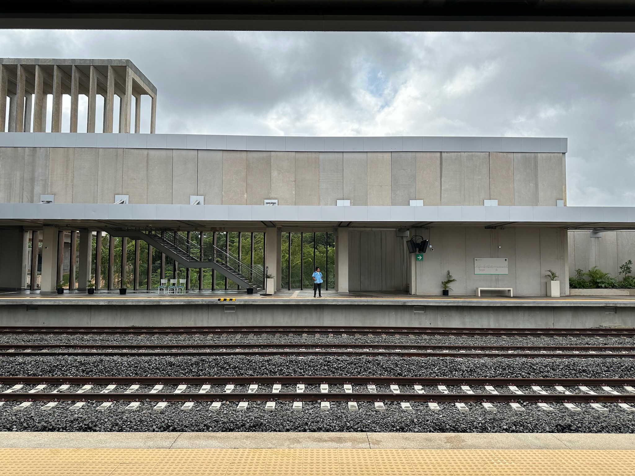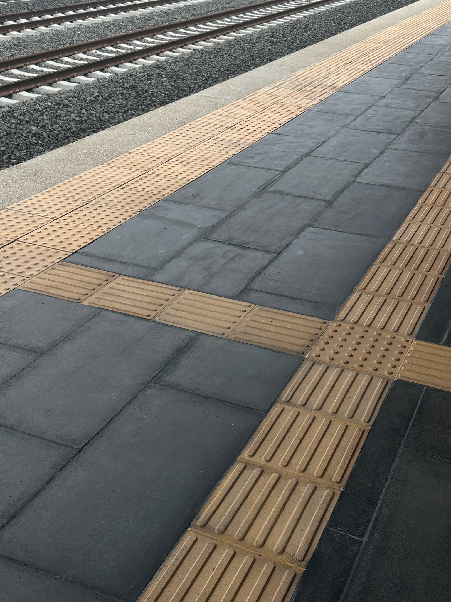 Piso prefabricado y guías táctiles.